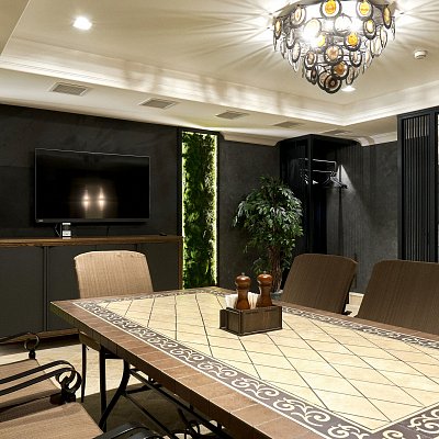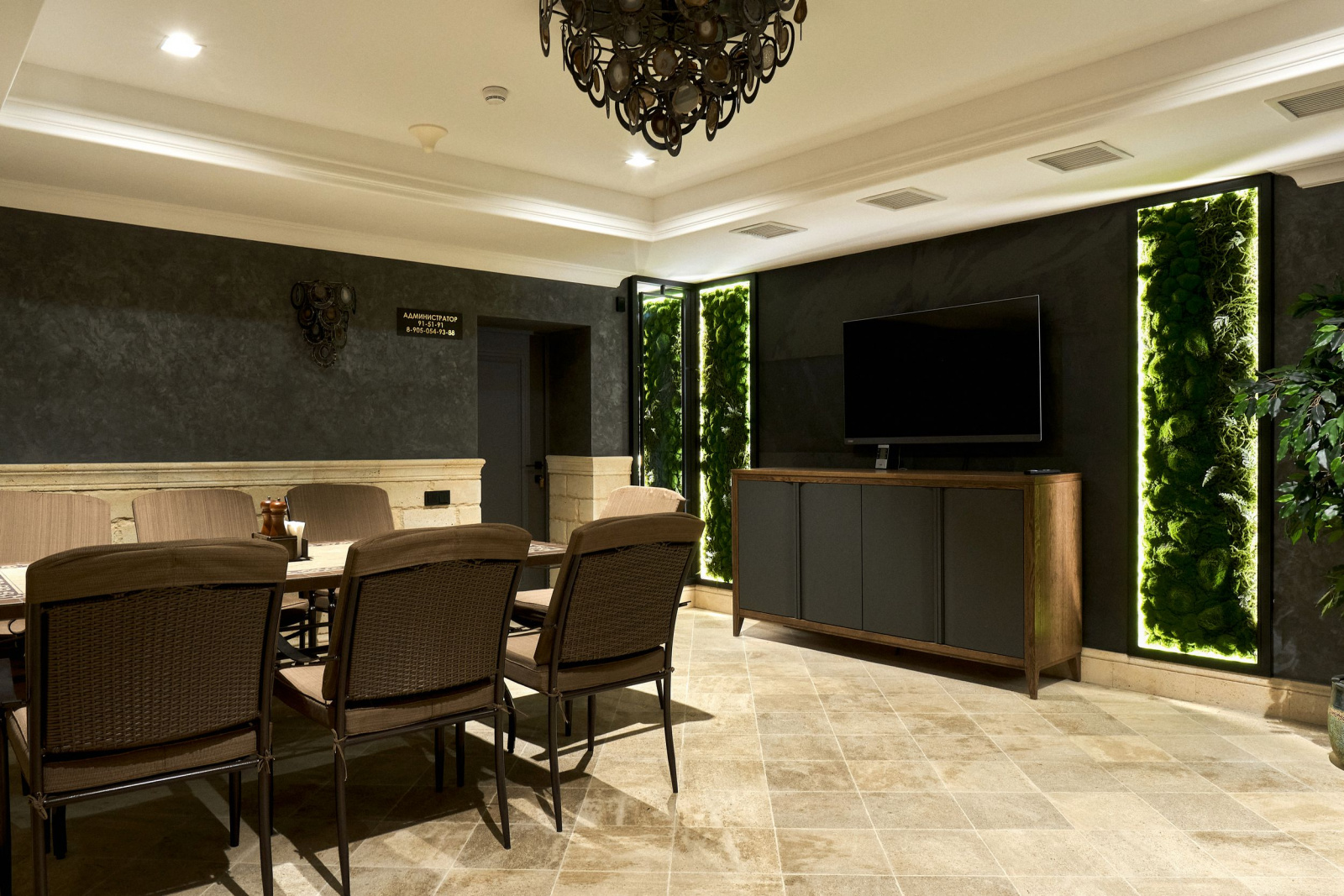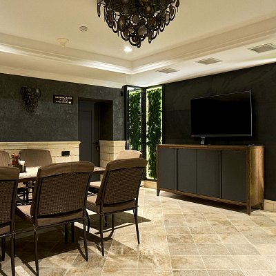 Зона отдыха с большим столом и мультимедиа |