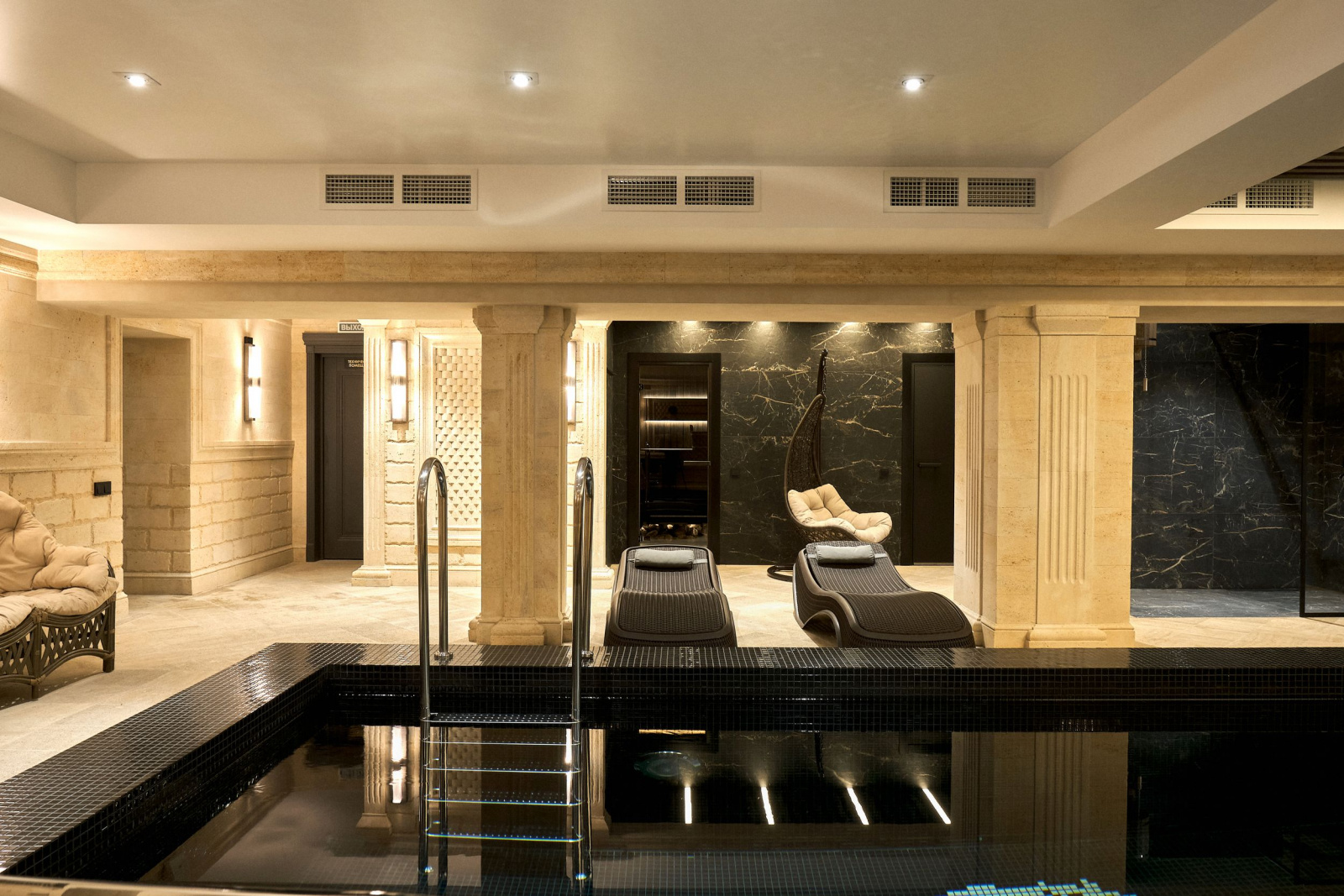 Просторный бассейн с гидромассажем |